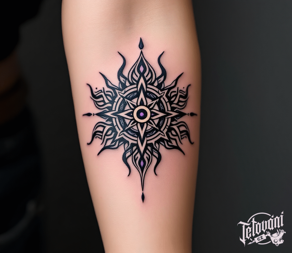 Tetování keltské znaky, keltské slunce na předloktí