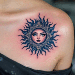Tetování keltské znaky, keltské slunce pod klíční kostí