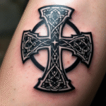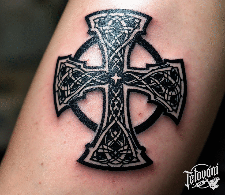 Tetování keltský kříž s kruhem, symbol života na předloktí