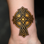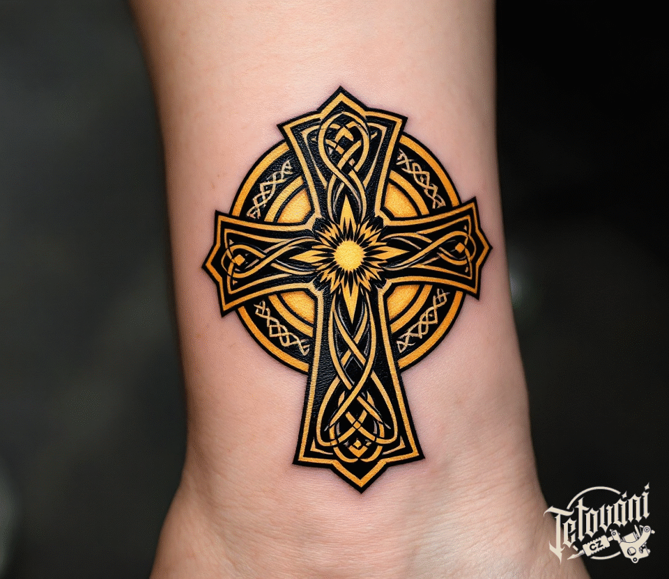 Tetování keltský kříž s kruhem, znak a symbol života na předloktí