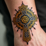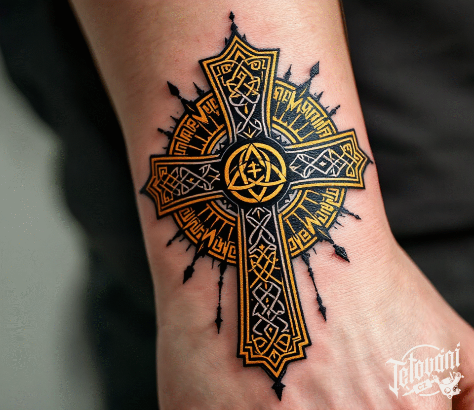 Tetování keltský kříž se symbolem triquetra na zápěstí