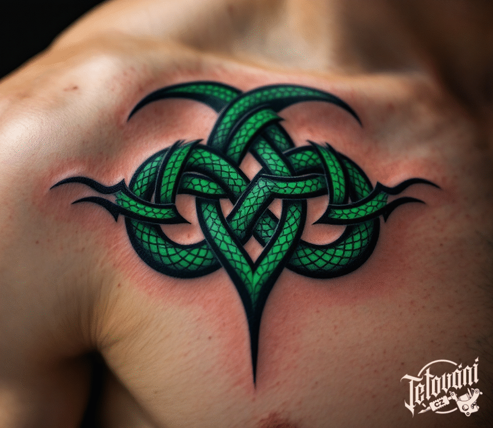 Tetování keltský znak na prso