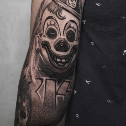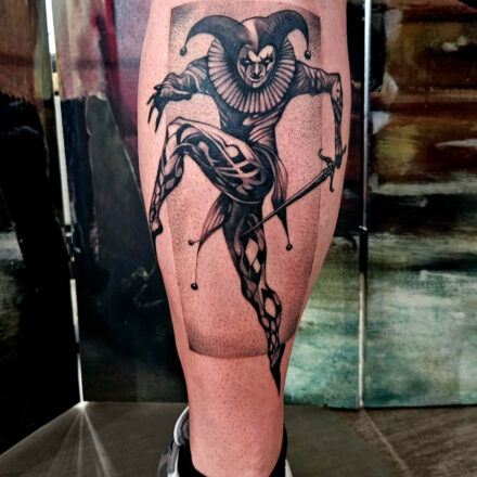 Tetování klaun na lýtku