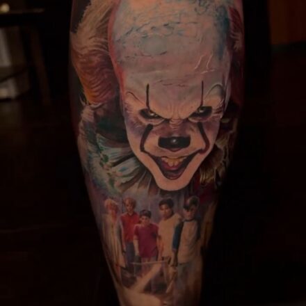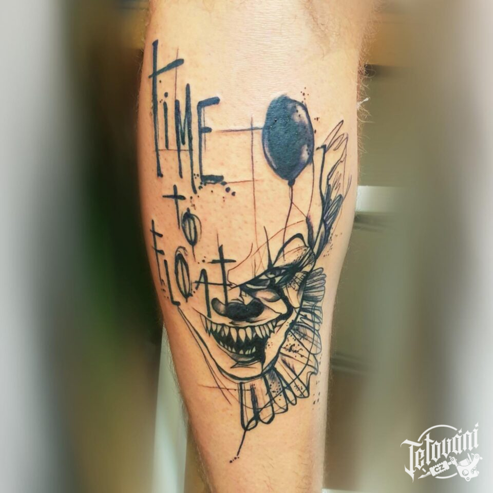 Tetování klaun, nápisy na lýtko