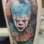 Tetování klaun z filmů a pohádek na bok stehna