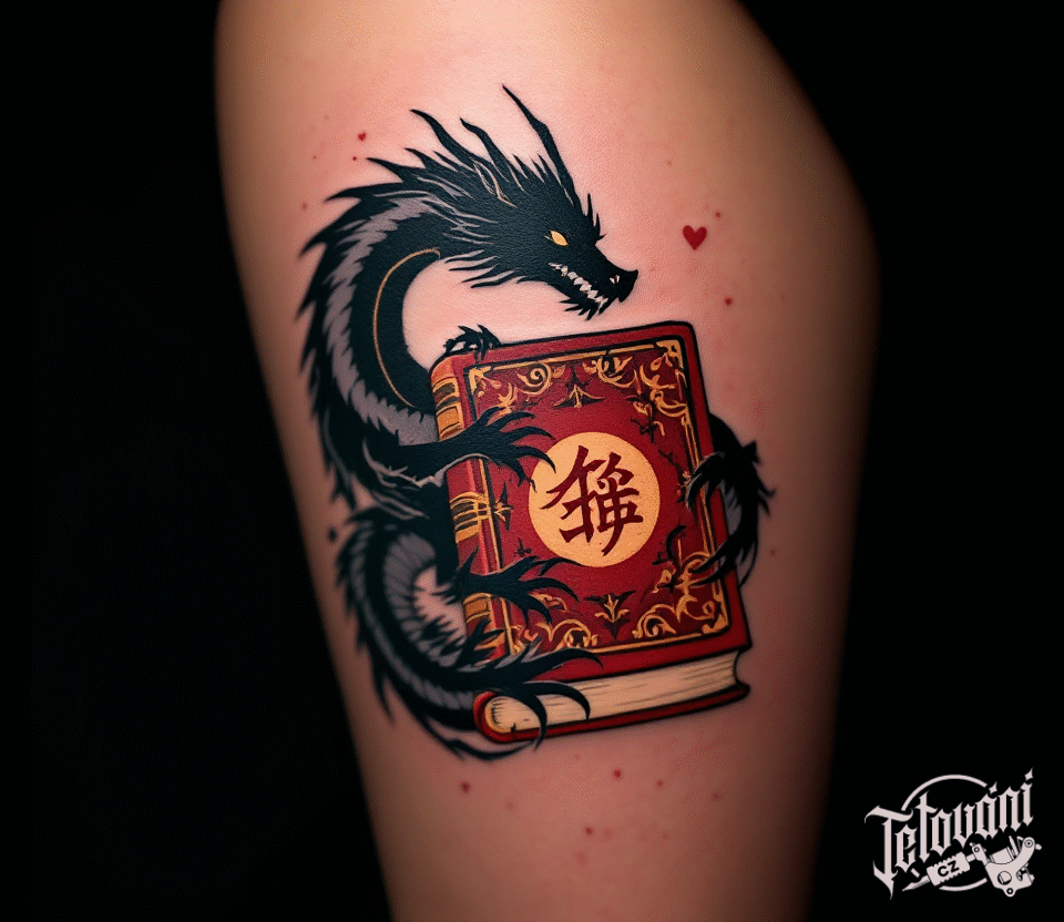 Tetování kniha a drak na ...