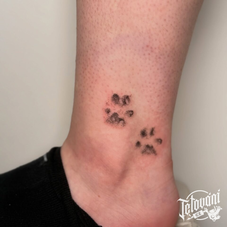 Tetování kočičí a psí tlapky na kotník