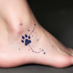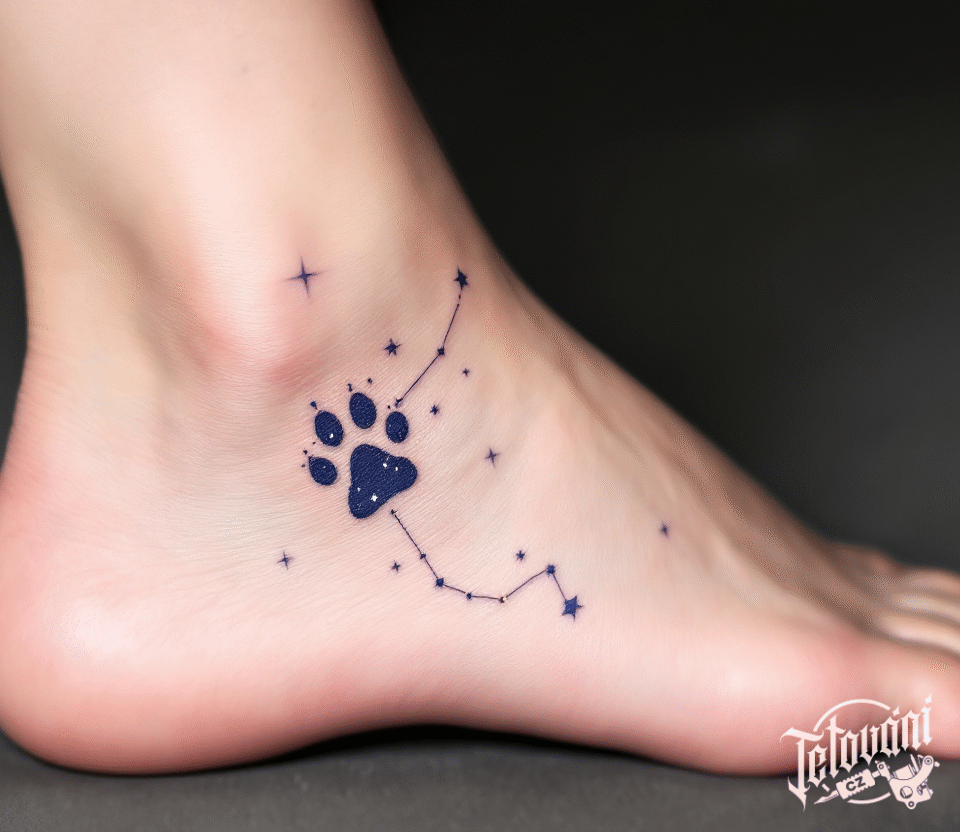 Tetování kočičí tlapka, souhvězdí na kotníku