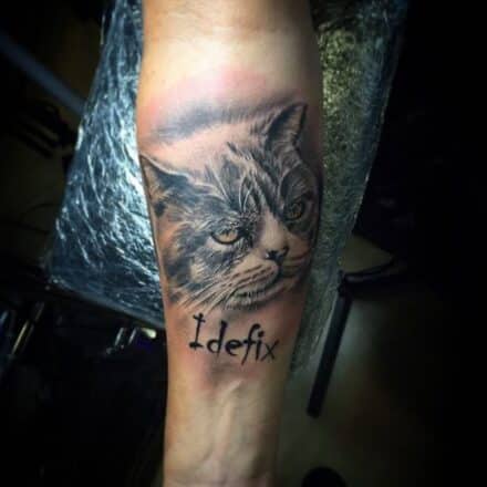 Tetování zvíře, kočka, jméno na předloktí