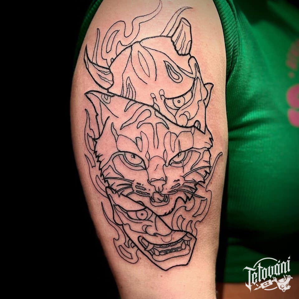 Tetování kočka, masky na paži