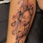 Tetování kočka, meč na ...