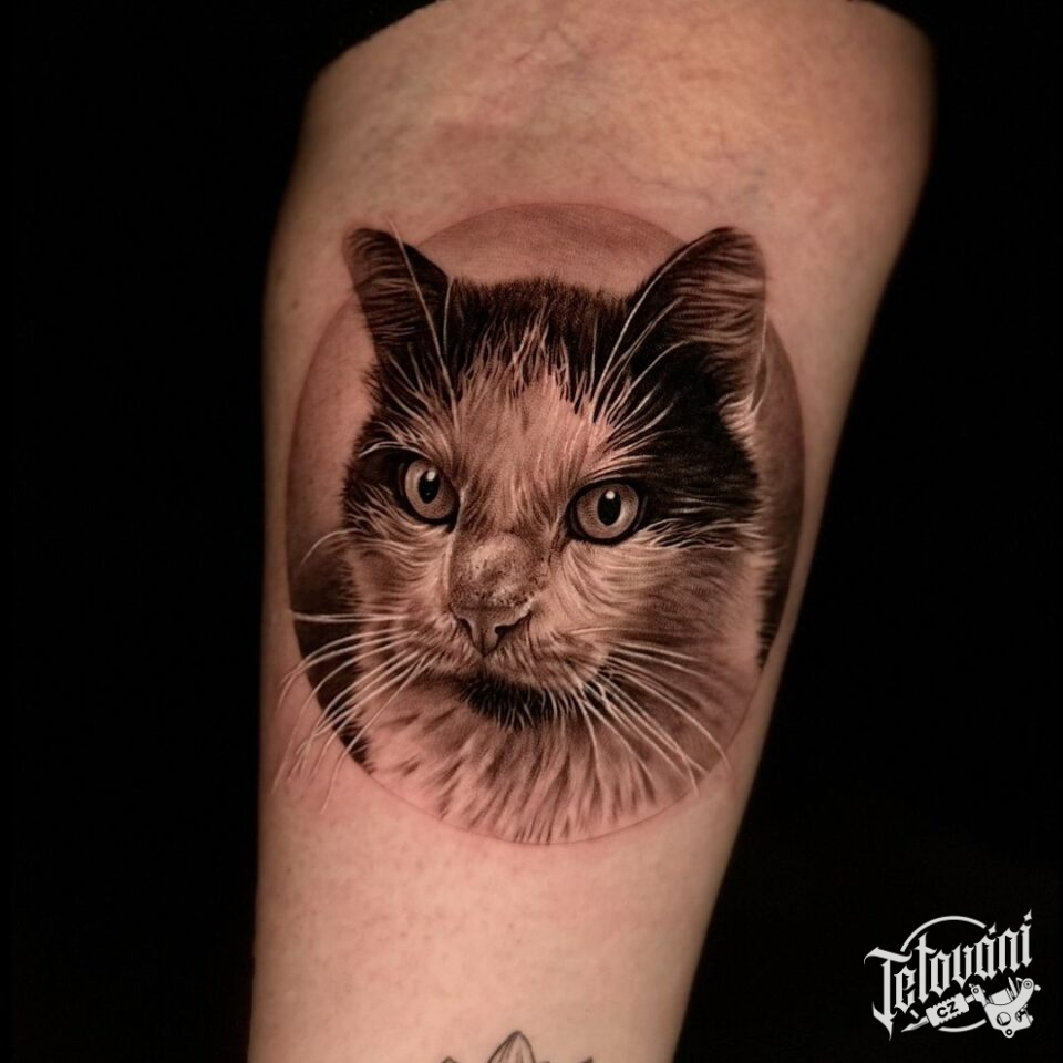 Tetování kočka na holeni