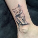 Tetování kočka na kotníku