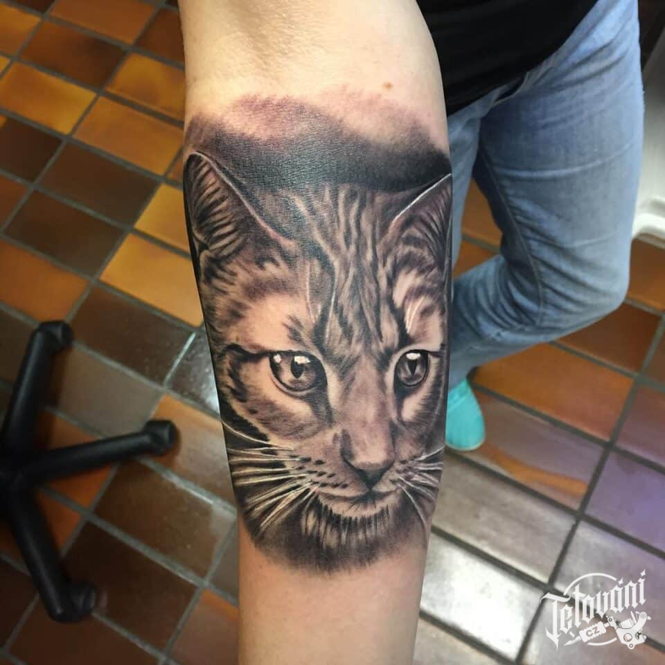 Tetování kočka na předloktí