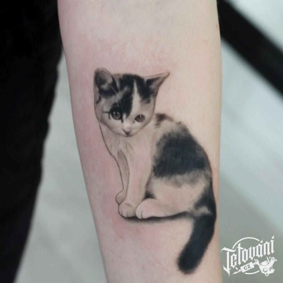 Tetování zvíře, kočka na předloktí
