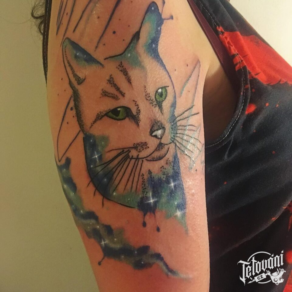 Tetování kočka na rameno