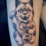 Tetování kočka na stehně