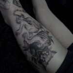 Tetování kočka na stehně