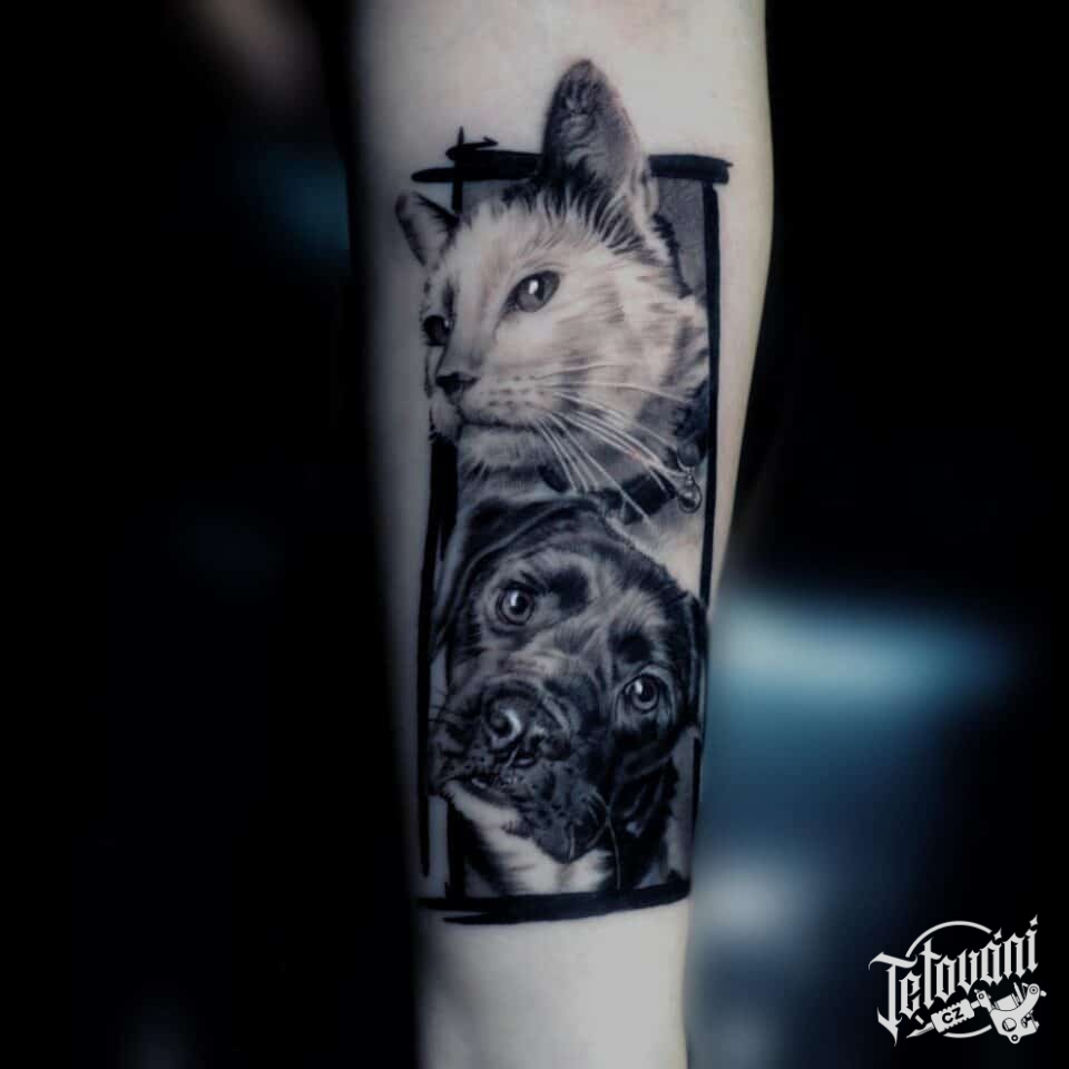 Tetování kočka, pes na předloktí