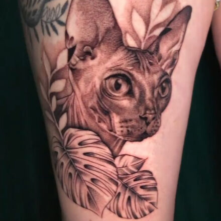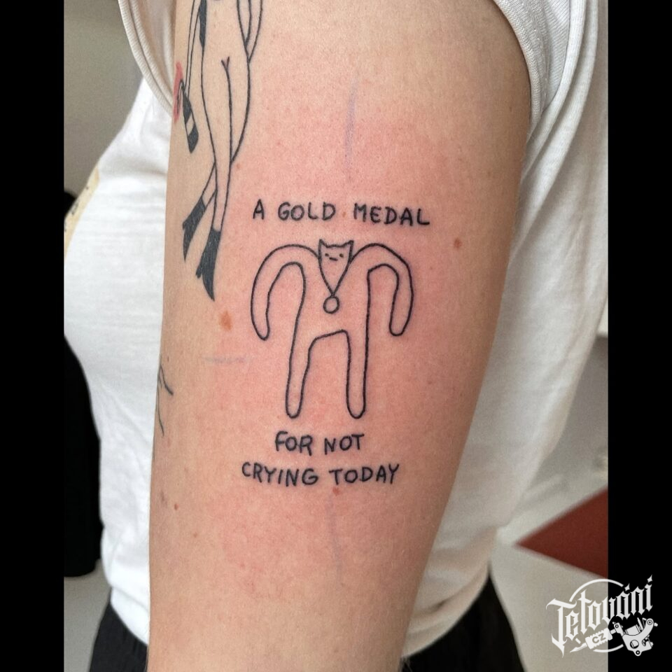 Tetování kočka s nápisy...