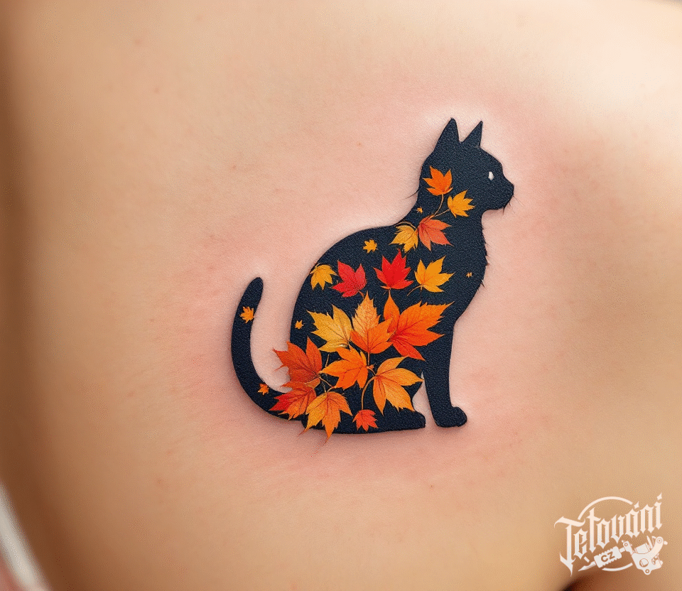 Tetování kočka silueta s litím na lopatce