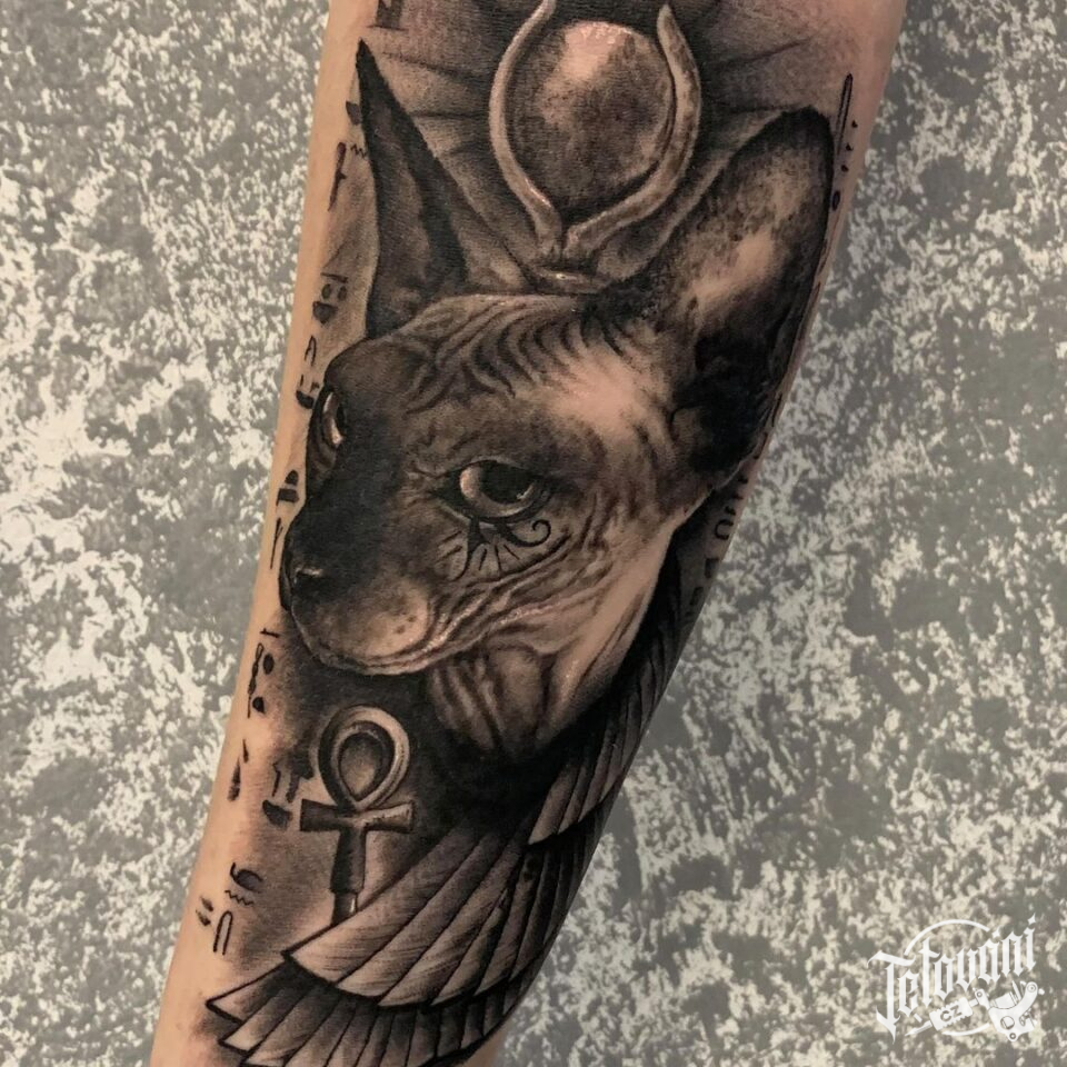 Tetování kočka, znaky a symboly, symbol života a egyptské oko