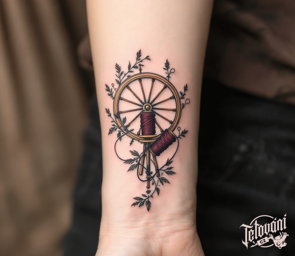 Tetování kolovrat a příze na předloktí