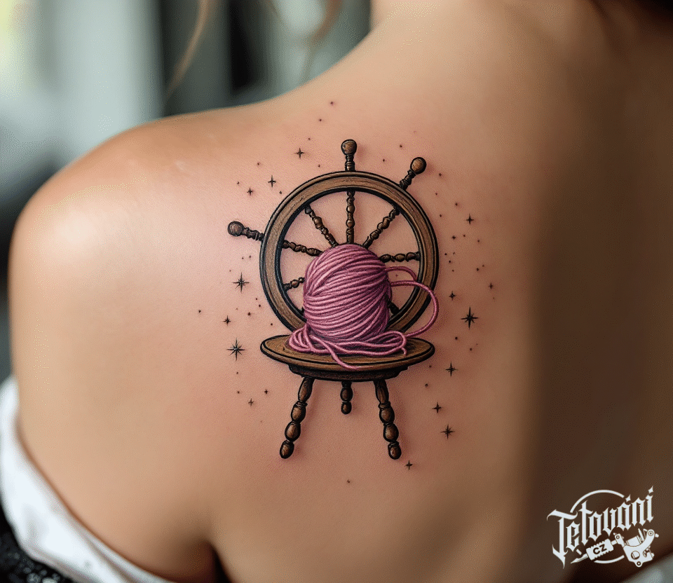 Tetování kolovrat s přízí na lopatku