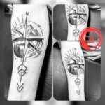 Tetování kompas a šípu na předloktí