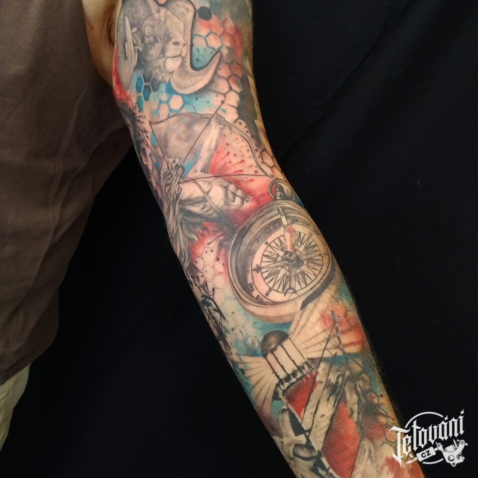 Tetování kompas, cestování, maják na ruku