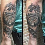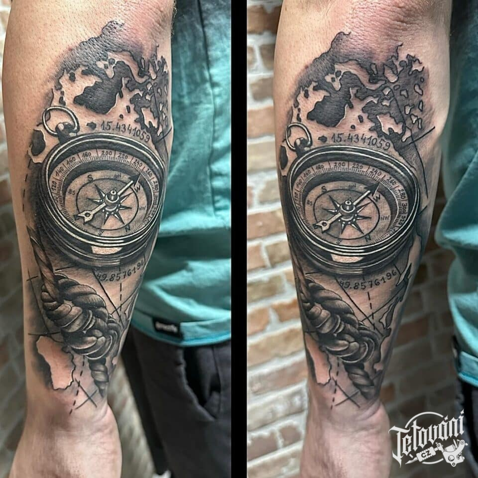 Tetování kompas, cestování na předloktí