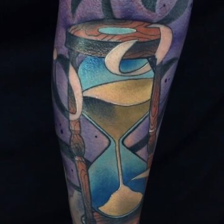 Tetování kompas, hodiny přesýpací na předloktí