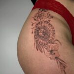 Tetování kompas, květiny, lilie na boku
