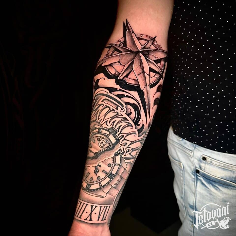 Tetování kompas na předloktí