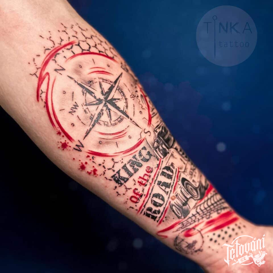 Tetování kompas na předloktí