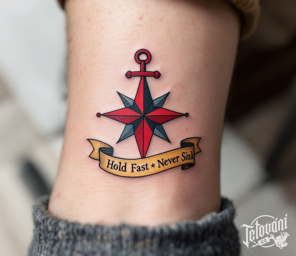 Tetování kompas, námořnici na ruku