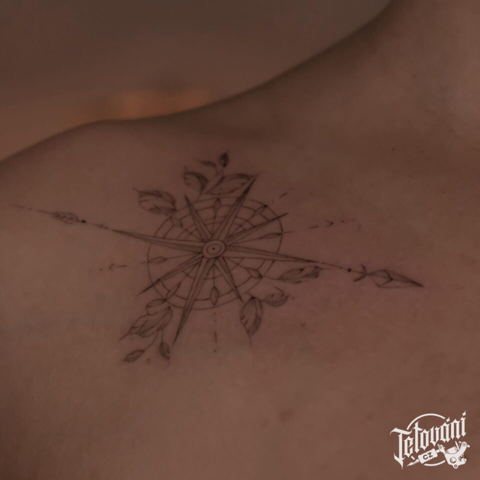 Tetování kompas pod klíční kosti