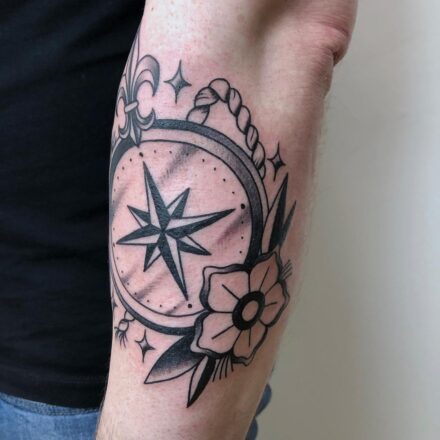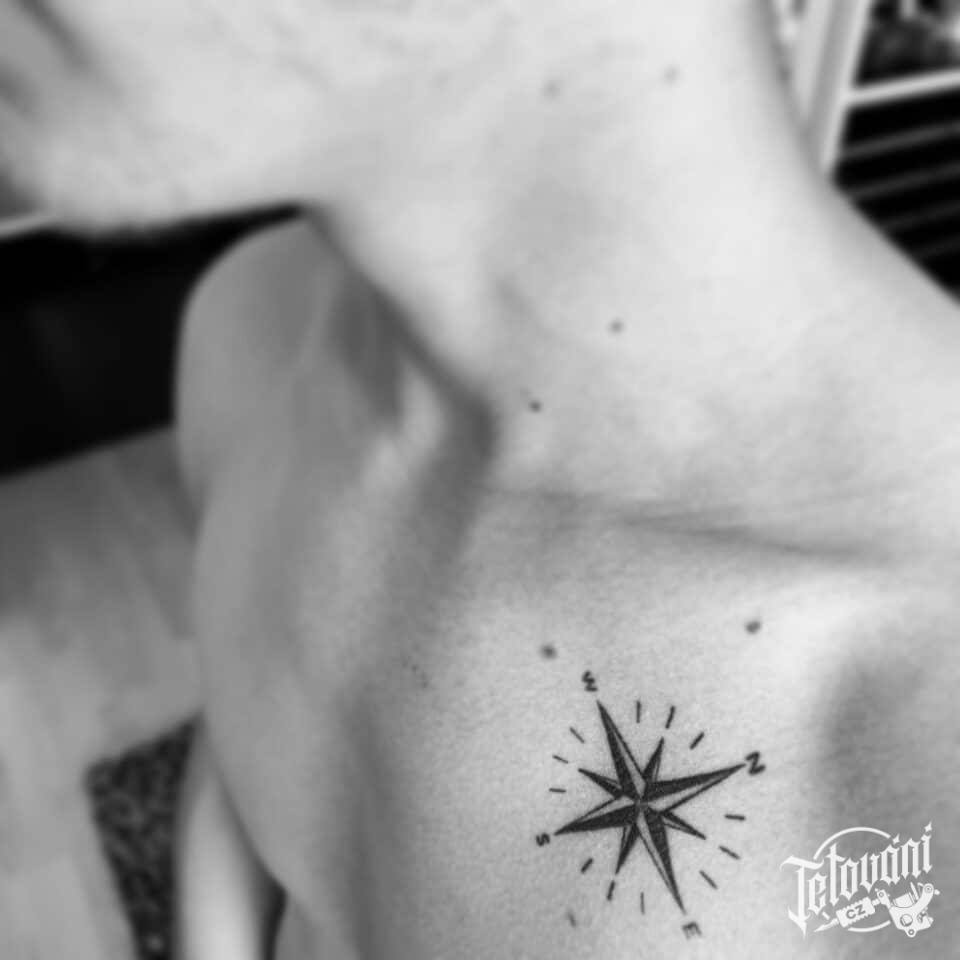 Tetování kompas, symbol pod klíční kost