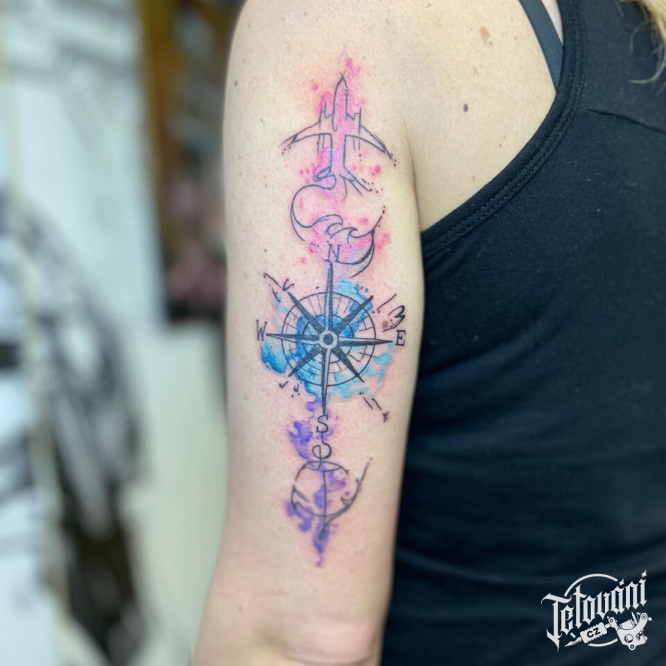 Tetování kompas na rameno