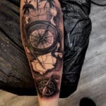 Tetování kompasy, symbol cestování, stromy na lýtko