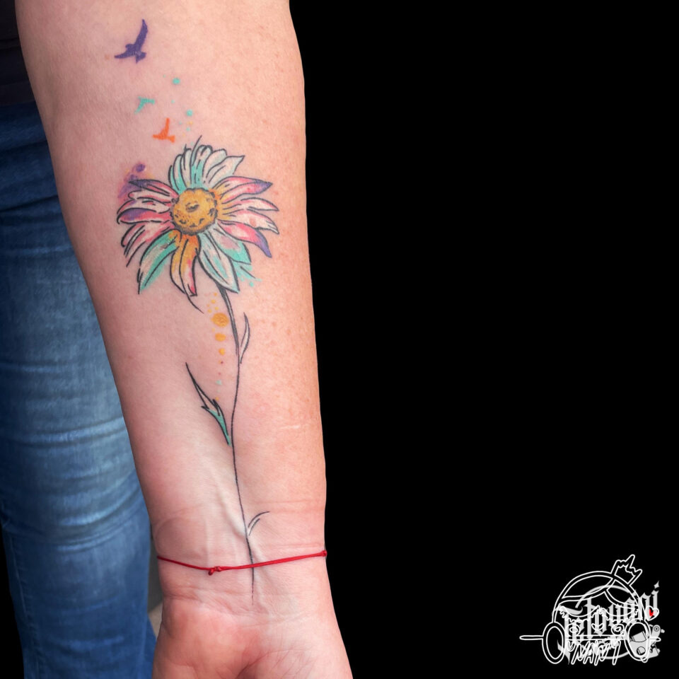 Tetování kopretina na předloktí