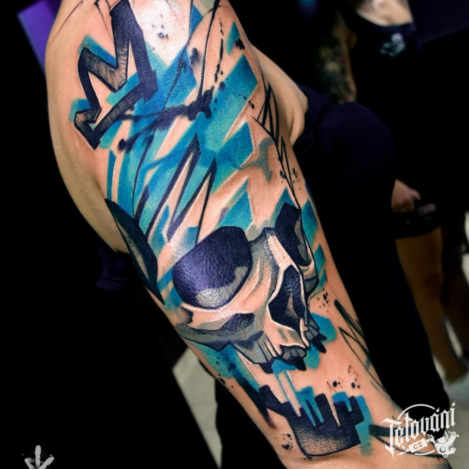 Tetování koruna s lebkou na rameno