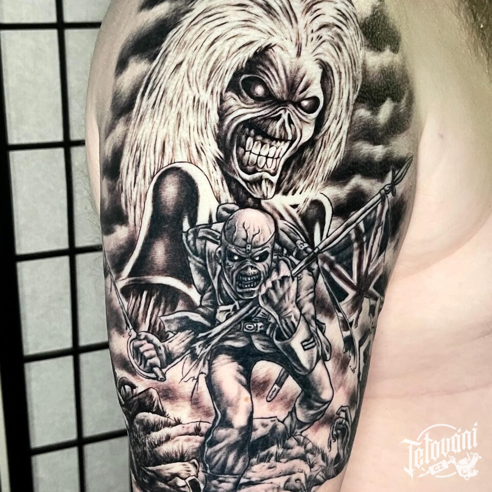 Tetování kostlivci, bojovníci, symboly síly na rameno