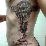 Tetování kostlivec a anděl na boku