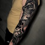 Tetování kostlivec a portrét, rukáv