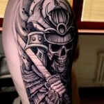 Tetování kostlivec, bojovník, mýtické bytosti, drak, maska, rukáv