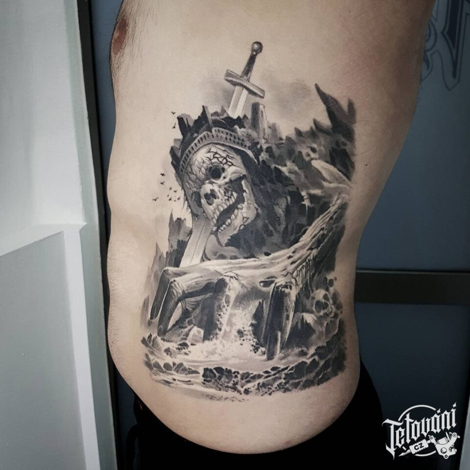 Tetování kostlivec na boku