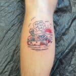 Tetování kostlivec, nápisy na lýtko