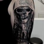 Tetování kostlivec, příroda les, smrt, náboženství portrét Ježiše na rameno