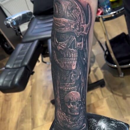 Tetování kostlivec samuraj na paži